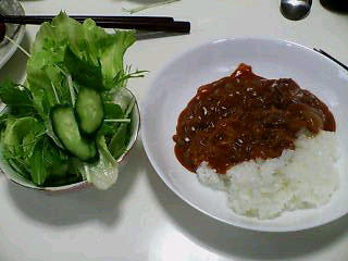 今夜のメニューは「ハヤシライス」。まずは玉葱のスライス。うん、なかなかの腕前。有り得ないぐらいの涙を流しながら切ってたけど…。