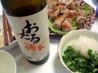 今日のメニューは、5類類の肉巻きの大根おろし和えと、山芋と大葉の和え物でしたから、焼酎でクイだな♪って思ってたんです。