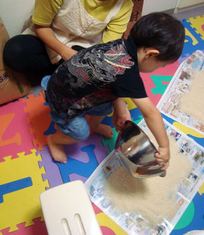 もちろん!挽いた米は、余分な熱を飛ばすように、広げて風にあてます。