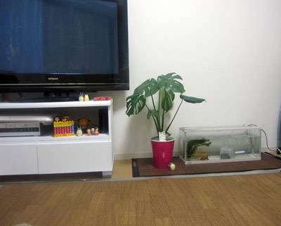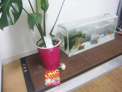 まだ、金魚とカメの置く場所が決まってなくて、『仮置き』だって念は押されているんだけど。。