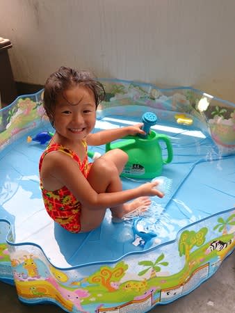 幼稚園は休みでも、小学校はまだあるので… ベランダでプール(*^^*)