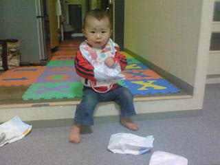 おとなしい 2008年2月10日 コメントを書く 颯斗がおとなしいのはイタズラしているとき 今日も、私達が夕飯食べてる時、颯斗はご飯も食べずに静かに何をしてるかと思ったら、ちゃっかりこんなとこに座って自分で探してきたお菓子を食べてるし・・・ 悪いことしてるのを見つけられたとき、颯斗はなぜか嬉しそうな顔をします なぜだ