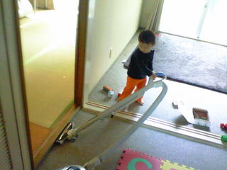 今日は、友達がうちに遊びに来ました! その前に… 颯斗も張り切って掃除機がけのお手伝いp(^^)q