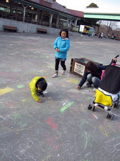 ってくらい、子供達は地面にらくがきをしまくっていました。