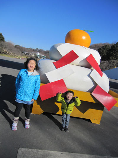 また、この広場にはで~っかい、、人の倍以上ある、鏡餅も飾られていました。