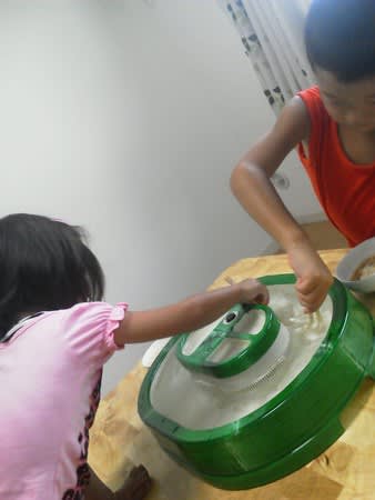 今日のお昼は流しそうめん~♪ 二人ともとるのに必死!!
