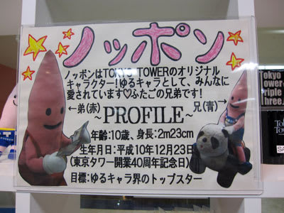 東京タワーの雄大な立ち姿や、赤と白というシンプルながら、なぜかウルトラマンをも連想させない、圧倒的な存在感。夜は季節・イベント事に見せてくれるロマンティックなイルミネーシュンなどなど、センスよすぎなタワーなのに、なぜ、マスコットはコレ。。