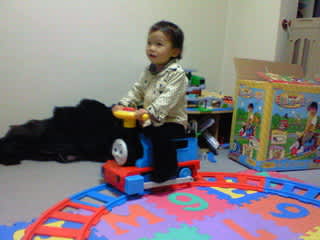 オモチャが増えました♪ 颯斗はもちろん、大喜び☆ まさか家の中でトーマスに乗って走るなんて考えてもいなかったゎ(;^_^A