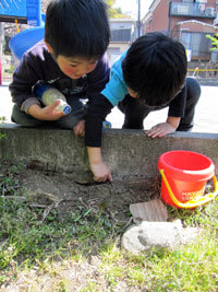 石や枯葉の下をガツガツ探し、最初はダンゴムシを触れなかった子達も、次第に触れるようになり、本当に楽しそうでした。