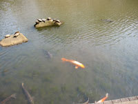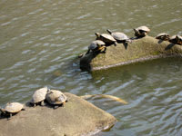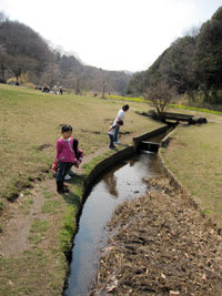 弁当の後は、みんなで池や川に行って、亀の甲羅干しを見たり、おたまじゃくしなどの水辺の生き物を捕まえたりして楽しみました。