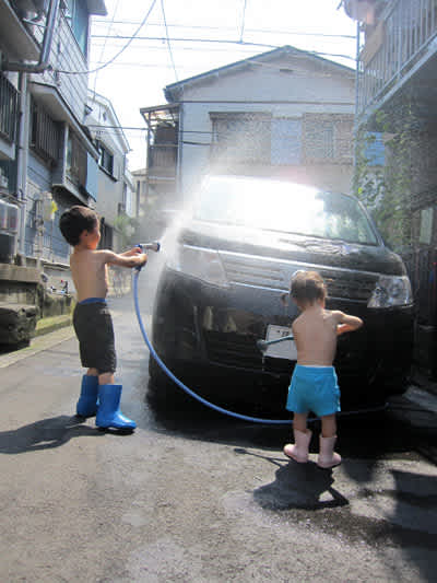 どこをなにを洗っているのかわからないままに、私も子供達もびちゃびちゃになりながら、涼しく愛車を洗車しました。
