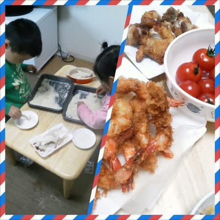 今夜の夕飯は2人がエビフライを用意してくれました♪