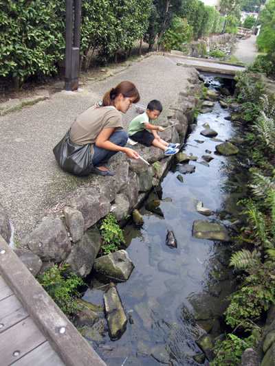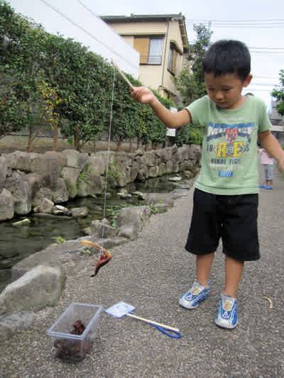 って、本人は・・ザリガニ釣りに夢中で、私の背中・・見てくれません(泣)