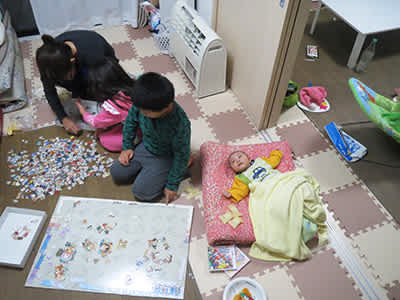 パズル 2014年11月21日 コメントを書く みんなでONE PIECEのパズル♪ 快斗が、『みんなでワイワイなにやってんだよ・・』って感じで様子を伺ってます(笑) 早く、快斗もできるといいね(^^)