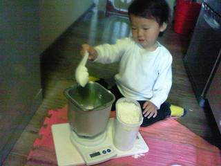 一緒に材料を量って、スタートボタンを押して