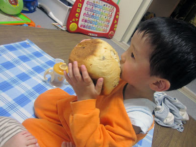 そして最近、パンを焼くのを手伝っている颯斗が、いつものようにパンの出来を見ていました(笑)ワカンノカ??