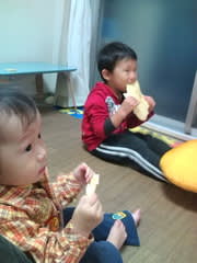 ホットケーキ 2010年10月28日 コメントを書く 最近、颯斗のおやつはホットケーキだそうです♪ それも、こ~んなに大きいホットケーキを!! チョコや、ホイップ、バターをのってけて♪♪ 自分で作って、自分で喰らう!! うん!最高だね♪