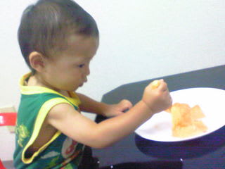 高級そうなメロンを頂きました! 甘いっ!!! グルメな颯斗は、もちろん完食です(^-^)v
