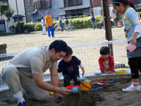 砂場と言えば小さい頃よくやりましたね~♪トンネル造り(笑)それと・・山作って穴掘って、上から水流したり。しまいには、川作ったり♪あれって、適度な水加減でないとくずれちゃうんですよね(笑)