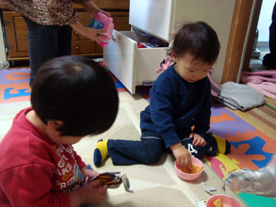 いっぱい遊んで、おやつ食べて、ウトウトして、お風呂に入れられ、御飯を無理やり食べさせられて・・