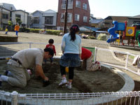 砂場と言えば小さい頃よくやりましたね~♪トンネル造り(笑)それと・・山作って穴掘って、上から水流したり。しまいには、川作ったり♪あれって、適度な水加減でないとくずれちゃうんですよね(笑)