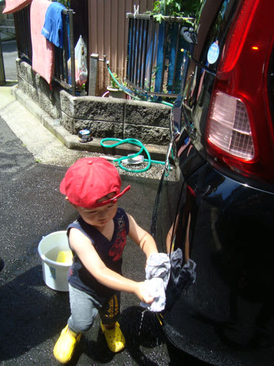 案の定・・全身ビチョビチョの颯斗は、楽しそうに洗車をしていましたよ♪
