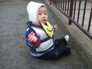 砂をいじったり、棒につかまって立ったり 楽しそうに遊んでました でも・・・寒い・・・