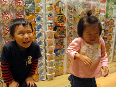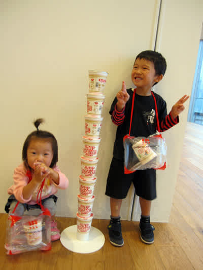 私的には、カップヌードルができるまで・・や、創業者の苦悩などが壁一面に書かれていたので、じっくりと見たかったのですが、この2人がいるから無理なのはわかってますんで、泣く泣くスルー(泣)