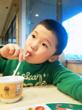 スイミングの進級テストで合格したので、頑張ったご褒美にガスト(^_^)b