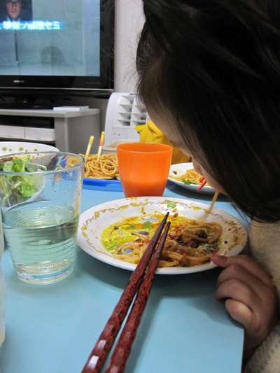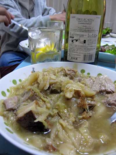 この日のメインは、前の日から仕込んでくれていたトマトソースのパスタと、前の日からコトコト煮ていたんだぁ~っていう、肩ロースのなんとか煮。(名前忘れました)