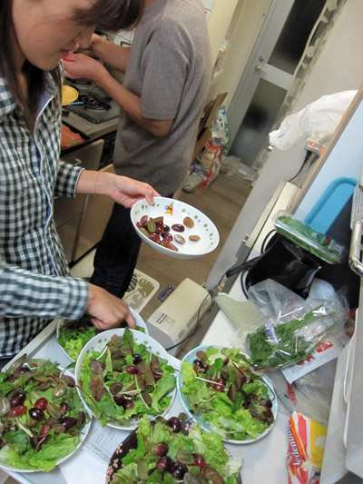 『君は、サラダのトッピングのブドウを飾り付けてくれる?』な~んて言って振ってみたり。