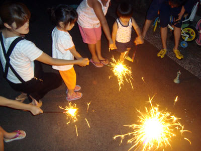 夜にみんなと合流して、お祭りの最終日には、花火をやりました。