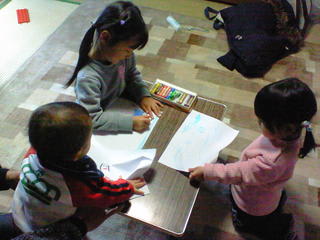 お姉さまたちと幼稚園ごっこ中 今は、お絵かきの時間です