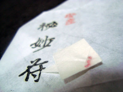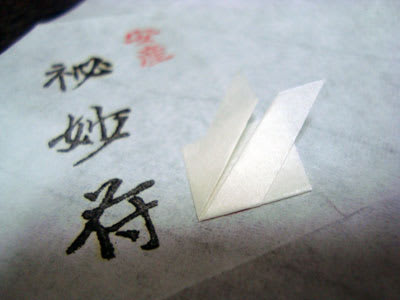 頂いた御守の中に入っている、赤い粒が包まれている和紙の折り方が、鶴の形だと女の子、兜の形だと男の子が産まれるとイワレがあるそうです。