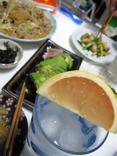 それに、生グレープフルーツまで買ってくれちゃって、焼酎最高でした♪