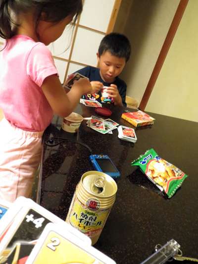 部屋では、一杯飲みながらワンピース・ウノなどをやり盛り上がりました。」