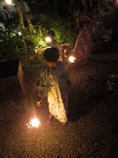 というとこで、旅館前の庭園にある広場で花火をしました♪