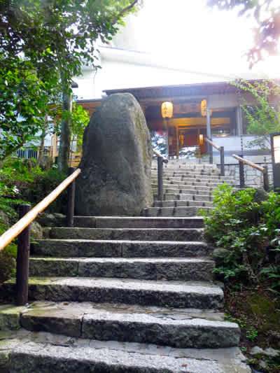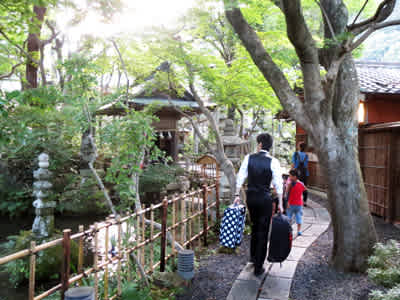 駐車場から、エレベーターに乗り、正面玄関に向かう面白い作りでしたが、玄関までのアプローチの日本庭園が素晴らしくって、2児の父はテンションがあがりました。