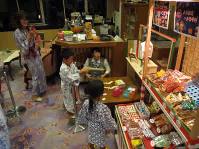 夜は、フロントで、子供達向けに駄菓子屋が出ます。
