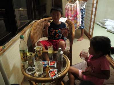 この日の夜も案の定・・お部屋で酒飲みながら、ONE PIECE UNO♪
