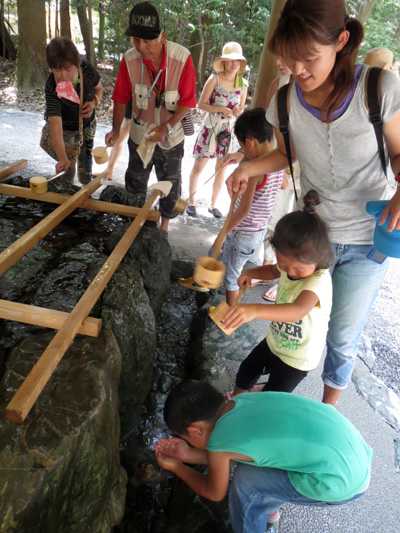 本来、お伊勢参りは外宮からが基本らしいのですが、この日の気温は37℃で、小さい子供(6歳と3歳)を連れてのお参りでしたので、内宮だけのお参りでした。