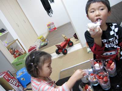 やっぱり、手作りでしょ!?ってことで、ケーキ率が高い我が家ですので、この日はちょっと変わった、手作りパフェを子供達が作りました♪