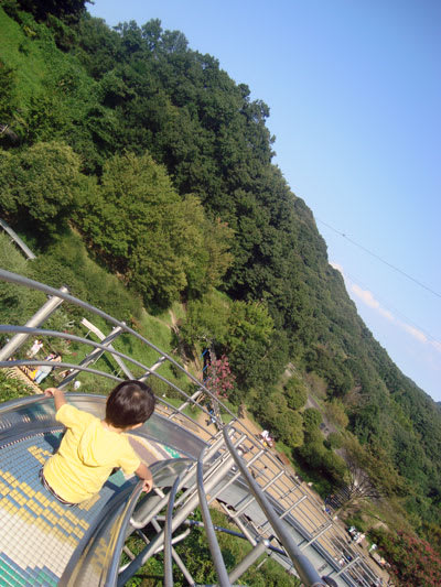 私はね、このローラー滑り台で、前回ケツがすごい事になっちゃったから、嫌だったんですよ!動物園にしようよ~と、自然動物園の方を押したのですが・・