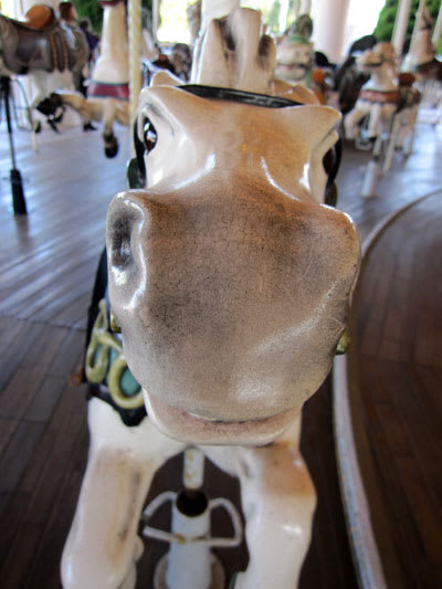 仕事で、シーパラに来た際に教わったのですが、実はこのシーパラのメリーゴーランドは、サンフランシスコで製作されたもので、床も天井も全部木製なんですよ♪