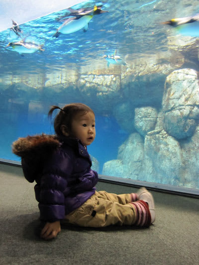 その場に座り込んで、ペンギンを見ていました。