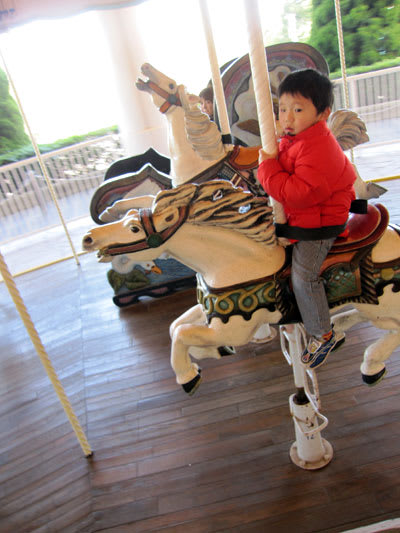 もちろん!メリーゴーランド大好き男・颯斗はノリノリで乗馬。
