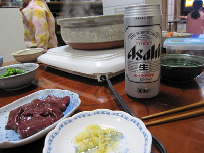 鍋の材料と大好きな白子&レバ刺とビールを買ってもらい、鍋喰らいながらビールをグビグビやりました♪