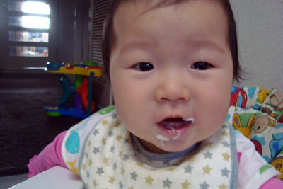 りこもお兄ちゃんに食べさせてもらって嬉しそう♪