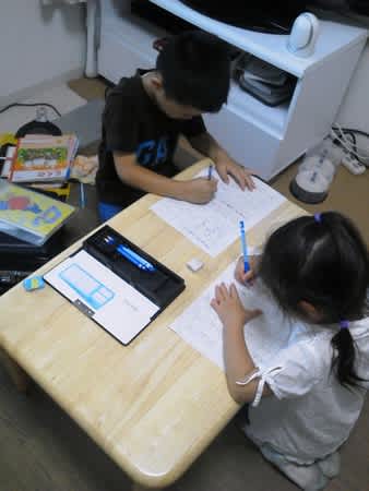 颯斗が宿題やってると、リコもお勉強♪ リコ、鉛筆しっかり持ててるし、何気に字が書けてるからビックリ(笑)