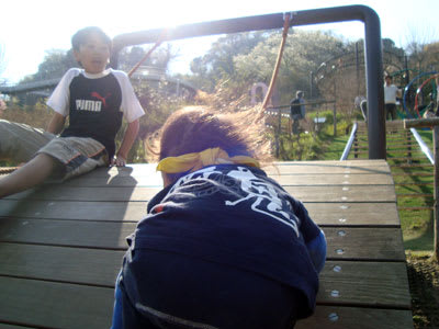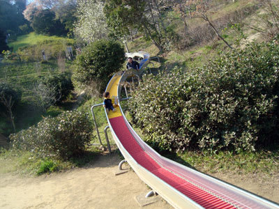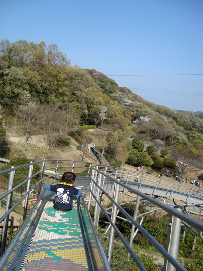 昨日、こども広場では、まず横浜一を誇るローラー滑り台に行きました。